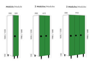 Por módulo, Bloco de 2 módulos ou Bloco de 3 módulos.