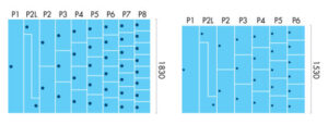 De 1 a 8 portas e 2 portas em forma de “L”.